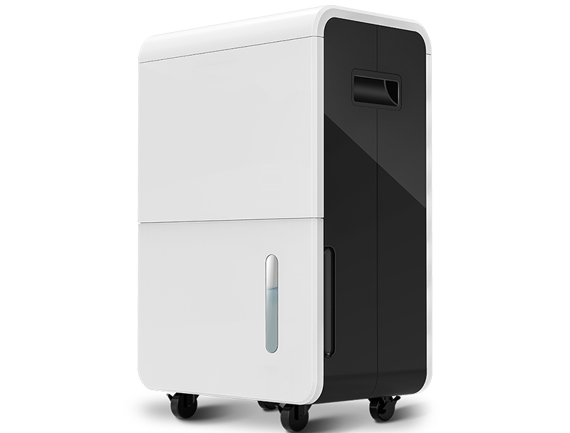 家用除濕機通過風機將潮濕空氣抽入機器內部,通過壓縮機制冷將蒸發器降溫至露點以下,潮濕空氣經過蒸發器在表面凝結成水,匯集至接水盤后,流入水箱中,干爽空氣經冷凝器重新加熱由出風口排出,這樣不斷循環將室內濕度降低。